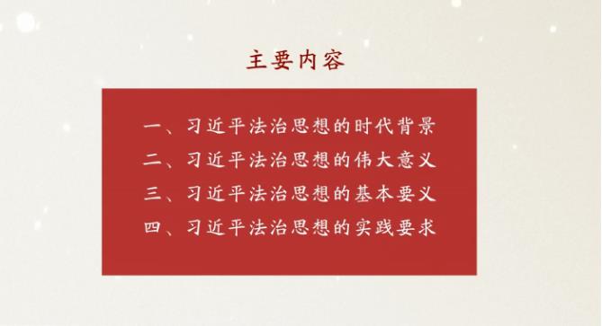 培訓中,全體干部員工集中收看了中國人民大學法學院教授、博士生導(dǎo)師馮玉軍主講的《以習近平法治思想為指導(dǎo) 全面推進依法治國》視頻。馮玉軍教授從習近平法治思想的時代背景、偉大意義、基本要義、實踐要求四個方面,詳細闡釋了習近平法治思想的深刻內(nèi)涵。通過學習培訓,使與會人員進一步深化了對習近平法治思想的理解和認識,不斷增強了“四個意識”、堅定了“四個自信”、做到“兩個維護”,不斷把學習貫徹習近平法治思想引向深入。