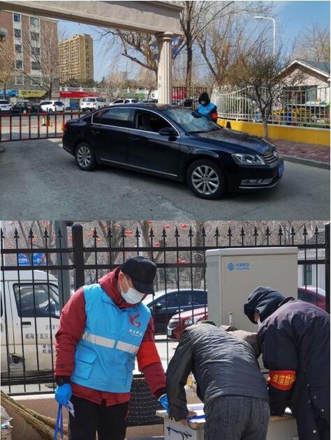 “你好,請配合量一下體溫,用手機微信或支付寶掃一下二維碼進行登記?!痹谒{天小區(qū)和世紀家園小區(qū)路口檢查站里,各有一支城建黨員志愿服務(wù)隊正積極踐行雷鋒精神,全心全力投入到社區(qū)防疫工作中。他們與怡海園社區(qū)工作人員聯(lián)合防控,對外來車輛和流動人員進行登記及體溫檢測,做好疫情監(jiān)測、排查、預(yù)警、防控、登記等工作。最大限度減少人員流動,外來走親訪友人員一律勸退,努力把疫情風(fēng)險降到最低,守好社區(qū)第一道防線,守住人民群眾健康安全防線。