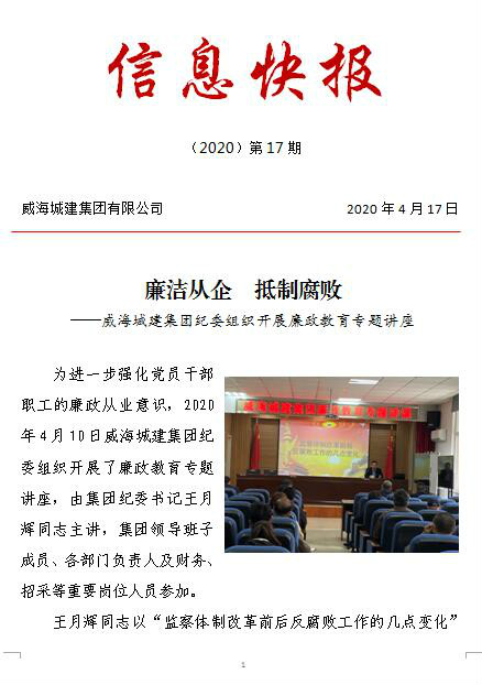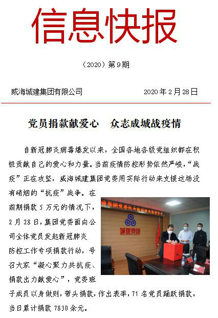 威海城建集團全力做好新型冠狀病毒感染的肺炎疫情防控工作