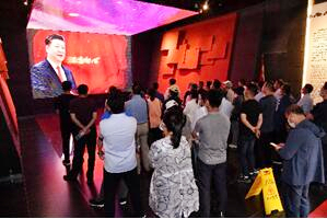 集團(tuán)黨員一起穿越了120多年的時(shí)光隧道,共同回顧了甲午戰(zhàn)爭(zhēng)以來(lái)中華民族救亡圖存的曲折歷程,深刻理解了歷史和人民為什么選擇共產(chǎn)黨、為什么選擇社會(huì)主義等重大話題,進(jìn)一步增強(qiáng)了對(duì)社會(huì)主義的理論自信、道路自信、制度自信、文化自信。面對(duì)黨旗,集團(tuán)黨委副書(shū)記孫曉東同志帶領(lǐng)全體黨員一起重溫入黨誓詞:“我志愿加入中國(guó)共產(chǎn)黨……為共產(chǎn)主義奮斗終身,隨時(shí)準(zhǔn)備為黨和人民犧牲一切,永不叛黨?!?/span>鏗鏘有力的宣誓聲久久回蕩在館內(nèi),深深感染了現(xiàn)場(chǎng)所有人……