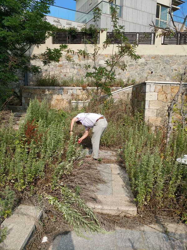 前幾天,物管中心去查看一處轉(zhuǎn)交過來的資產(chǎn),一進院子,雜草叢生。唐建民一邊說著:“這哪像一戶人家?!币贿厪能嚿夏贸鲆恢患舳嗟募舻?,就冒著烈日收拾起雜草來。