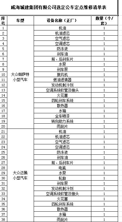 威海城建集團(tuán)有限公司選定公車定點(diǎn)維修保養(yǎng)單位